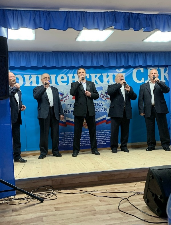 Особое место заняла презентация о волонтёрской деятельности — о той постоянной гуманитарной помощи, которую жители села отправляют бойцам в зону специальной военной операции. Песня «Вперед, Россия!» в исполнении ансамбля «Гришане» стала гимном несгибаемости духа, а номер «Флаг моего государства» в исполнении Сергея Холодкова прозвучал особенно торжественно – зал слушал его с чувством глубокого уважения и гордости.