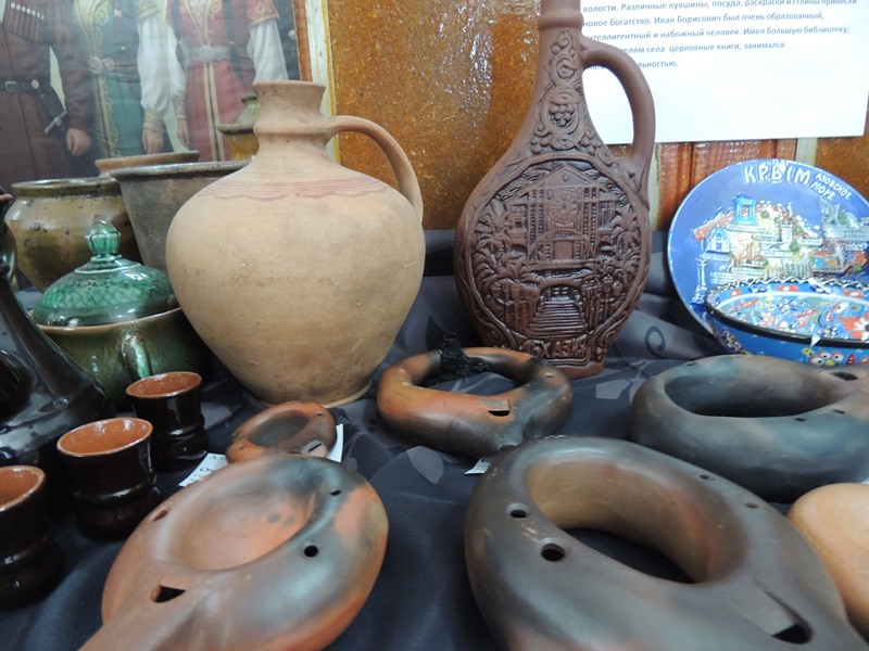На входе привлёк внимание тематический блок под названием «От дедов до внуков», где были представлены керамические изделия от старинных кувшинов до современных утончённых чайных сервизов. Здесь нас ждала новинка – оригинальные работы мастера-керамиста Александры Светловой – окарина. Это духовой музыкальный инструмент, вид свистковой флейты с четырьмя игровыми отверстиями и приятным звуком. Вторым открытием для нас были картины этой же талантливой мастерицы. В художественном искусстве не отстаёт и дочь. Её работы были в одном ряду с картинами матери.