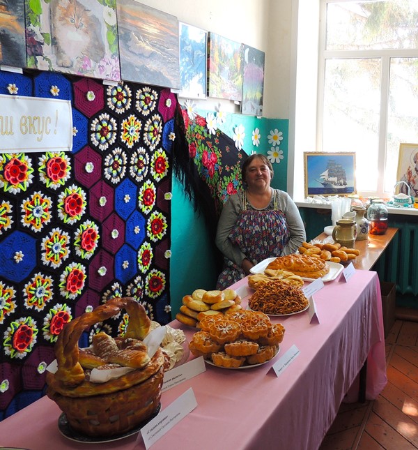 Традиционно выставку завершала продажа кулинарных шедевров разных народов – блины русские от Лапиной Тамары Егоровны, пироги от Глушковой Надежды Лаврентьевны, узбекский плов от Киселёвой Светланы Васильевны, сладкая корзина из теста от Сёмушкиной Светланы Викторовны, зефир от Фентисовой Елены Николаевны, хворост от Корзановой Нины Ивановны, курник от Шмидт Ирины Васильевны, пачат (мордовская кухня) от Осиповой Елены Николаевны и панжакай от Кондратовой Ольги Сергеевны.