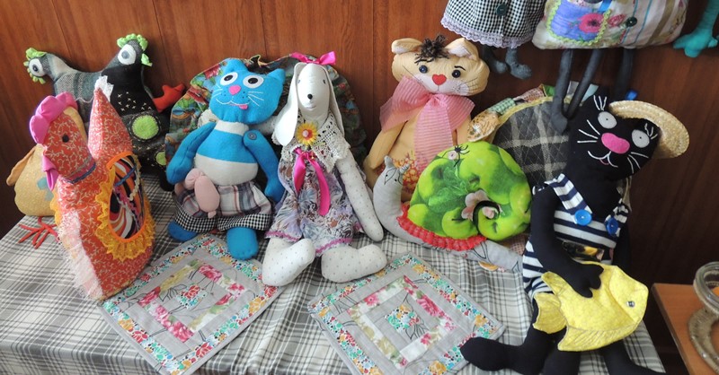 Медведева Валентина Николаевна очень любит работать с тканью в разных техниках: разноцветные коврики, прихватки, добрые и потешные куклы-тильды – зайцы, кошки, лягушки.