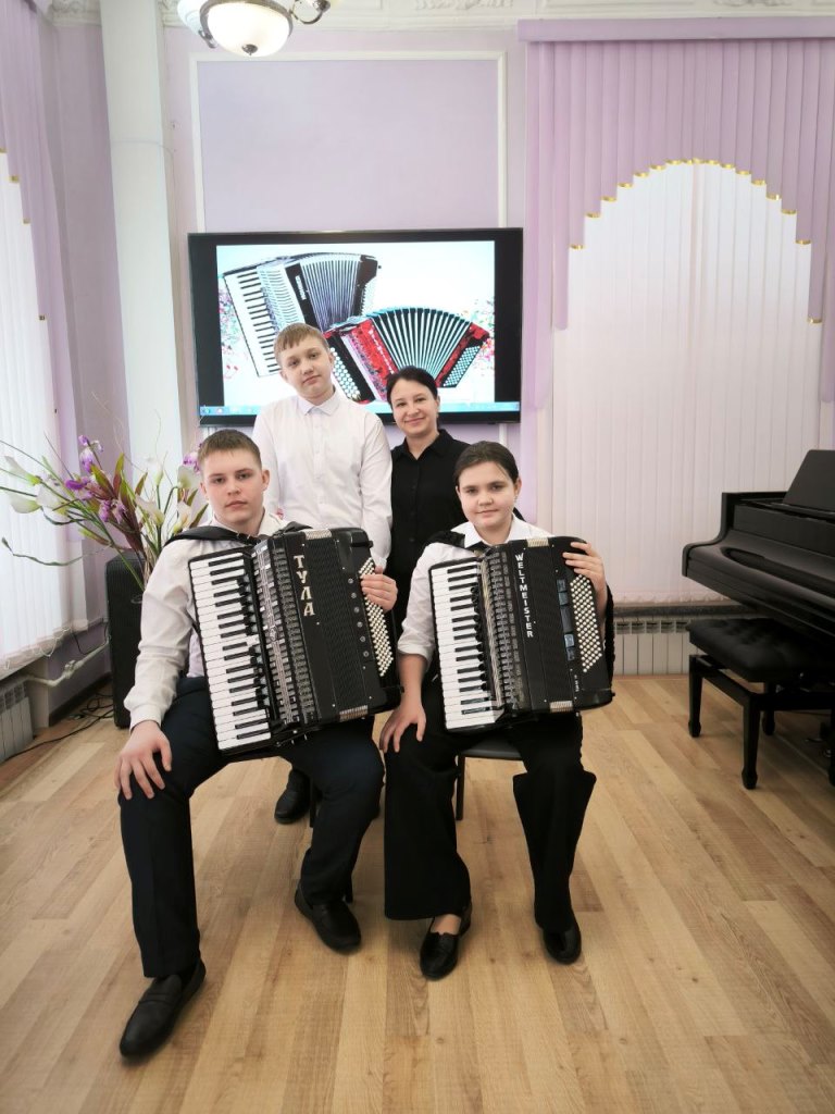 • Учащиеся класса Натальи Анатольевны Нейман – Бутакова Эрика, Васин Александр (концертмейстер Наталья Владимировна Барковская) и Гилев Вячеслав.