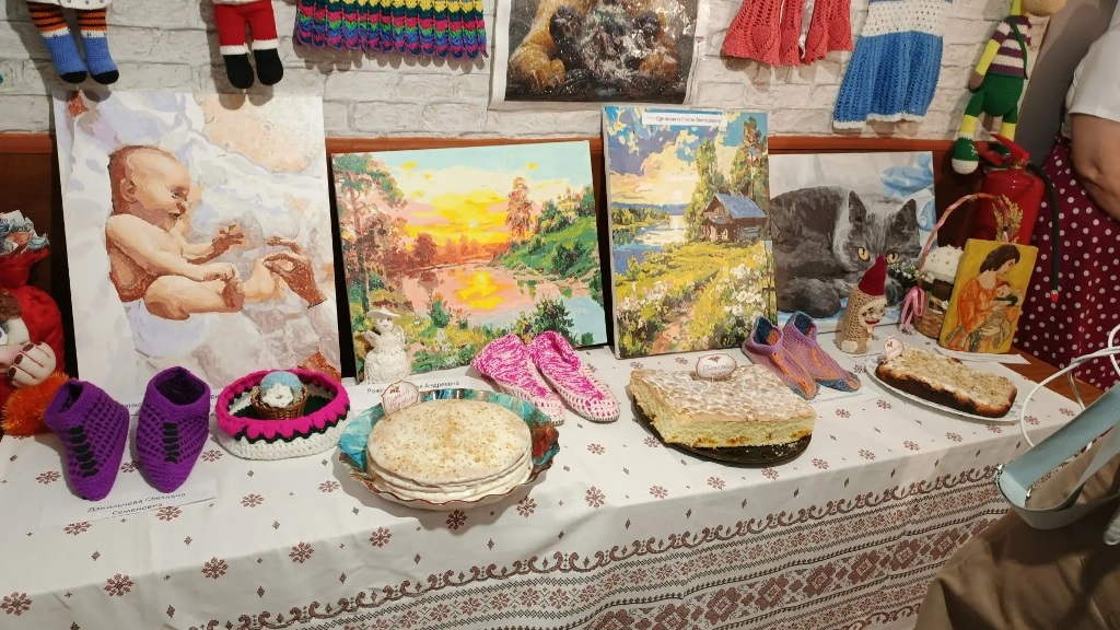 Свои изделия представили талантливые рукодельницы Валентина Михайловна Шпетер, Светлана Семеновна Данильчева, Людмила Андреевна Прохоренко, Римма Яковлевна Ерш, Елена Викторовна Гринкевич, Алла Александровна Бусс, Валентина Викторовна Формалева, Тамара Михайловна Прасол, Галина Ярославна Хорошилова и Людмила Андреевна Горбачева. Каждая работа была наполнена теплом и любовью, создавая по-настоящему праздничное настроение.