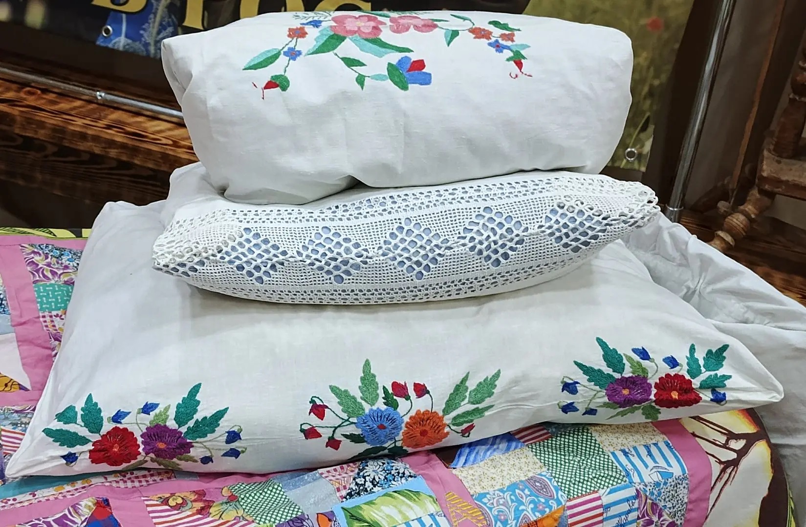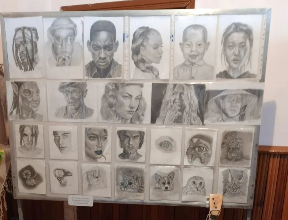Особый интерес у посетителей вызвала художественная часть экспозиции. Здесь было на что посмотреть: утонченные работы Анны Викторовны Козловой - рисунки на бересте; изысканная бижутерия и кружевные воротнички, виртуозно связанные крючком из бисера Татьяной Анатольевной Голощаповой; мир сказки, созданный Натальей Васильевной Рачковой - забавные фигурки любимых героев; роскошь интерьера - диванные подушки в атласных наволочках с затейливыми драпировками от Екатерины Дмитриевны Рязановой, а также пестрые лоскутные и вязаные коврики Татьяны Николаевны Тамбовцевой; карандашные портреты, в которых оживают черты киногероев — талант Натальи Александровны Розенберг; вязаные наряды от Светланы Александровны Чебаковой.