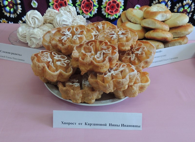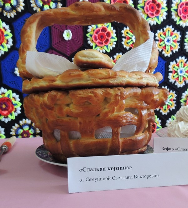 Традиционно выставку завершала продажа кулинарных шедевров разных народов – блины русские от Лапиной Тамары Егоровны, пироги от Глушковой Надежды Лаврентьевны, узбекский плов от Киселёвой Светланы Васильевны, сладкая корзина из теста от Сёмушкиной Светланы Викторовны, зефир от Фентисовой Елены Николаевны, хворост от Корзановой Нины Ивановны, курник от Шмидт Ирины Васильевны, пачат (мордовская кухня) от Осиповой Елены Николаевны и панжакай от Кондратовой Ольги Сергеевны.