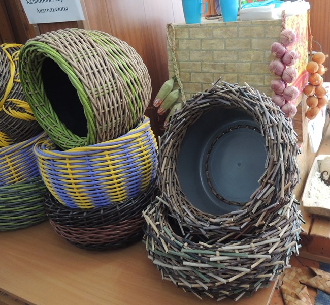 Калинина Марина Анатольевна представила коллекцию собственного изготовления уличных кашпо для садовых цветов из ротанга, которые прекрасно украсят любой двор в летний период.
