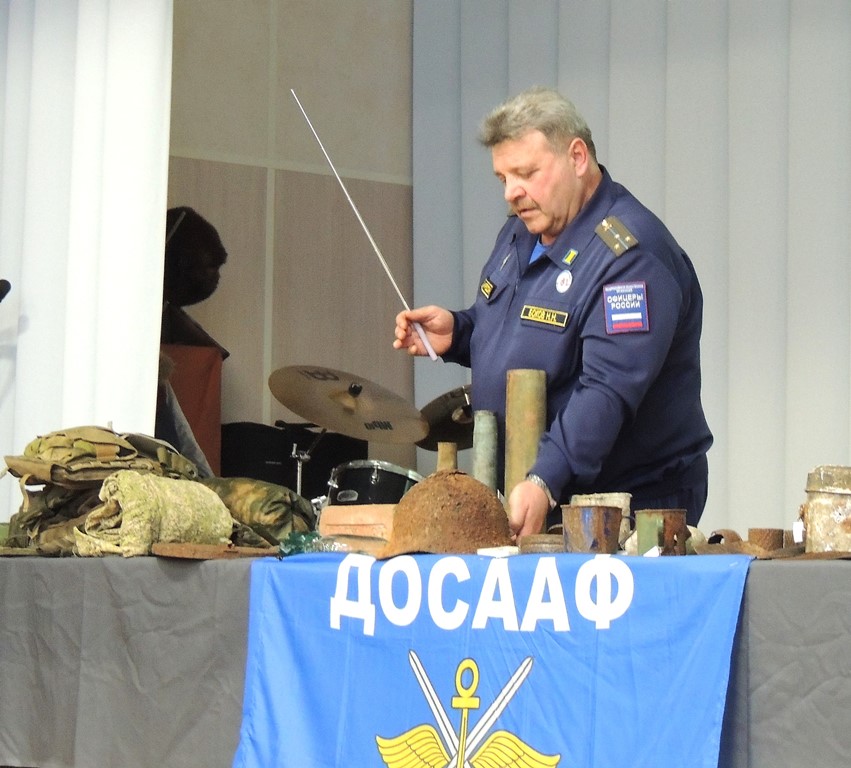 Вместе с Н. Н. Боковым, руководителем местного отделения ДОСААФ, музейщики продолжили поездки по школам района с уникальной выставкой.