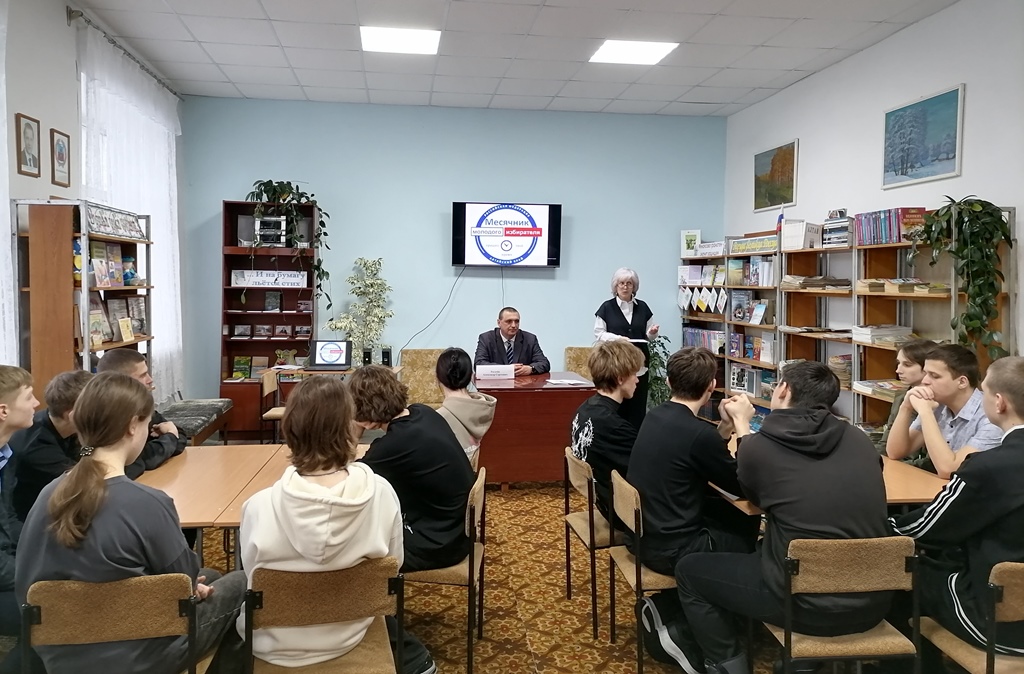 В рамках Месячника молодого избирателя в Мамонтовской районной библиотеке состоялась традиционная ежегодная встреча будущих молодых избирателей с А. С. Рогачёвым, председателем Территориальной избирательной комиссии Мамонтовского района. Участниками мероприятия стали учащиеся 10А класса Мамонтовской средней школы.